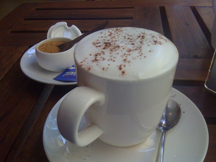 After trying to eat socially for a week I gave in and walked to the foreigner friendly restaurants on the beach for lunch. There was a hotel coffee shop on the way called “Bread and Butter” that served real (overpriced) espresso. Cappuccino cost = 130 THB.
