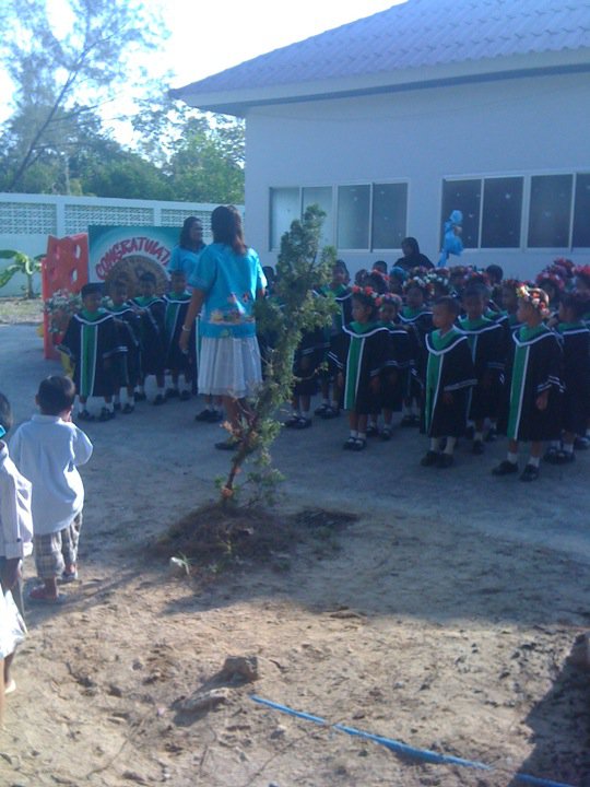 The Thai woman from ECC came to the ceremony presumptuously to check up on me. She told me how nice I looked in my new clothes and we sat together the whole time. Before saying goodbye, she told me to contact ECC again for my next government teaching job. I said, “Definitely” with no intentions of doing so. Like my students, I was moving on to primary school.